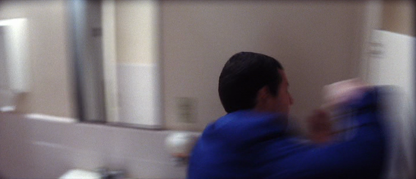 Punch drunk love bathroom. Sandler plays barry egan a painfully shy san. A scene from paul thomas anderson s punch drunk love 2003. Although susceptible to violent outbursts bathroom supply business owner barry egan adam sandler is a timid and shy man by disposition leading a lonely uneventful life partly due to the constant berating he suffers from his seven sisters. Punch drunk love critics consensus odd touching and unique punch drunk love is also delightfully funny utilizing adam sandler s comic persona to explore the life of a lonely guy who finds love.